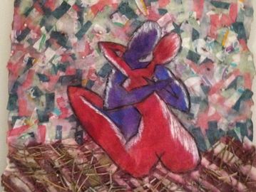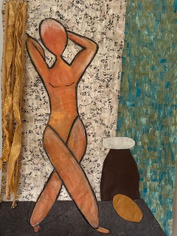I combine various materials and techniques into a single work. Unlike traditional collages that are typically made from paper, I used a diverse range of elements, such as paint, fabric, found objects, photographs, and natural materials.